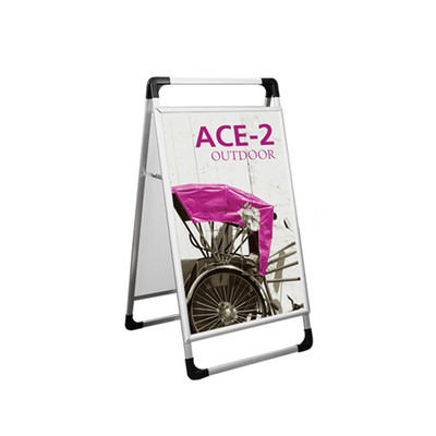 The Ace-2 Outdoor Sign is a sturdy, yet lightweight double-sided silver aluminum A-frame sign, perfect for storefronts, sidewalks, gas stations, car dealerships and so much more. The Ace-2 features snap frames on both sides for easy poster size graphic insertion and replacement. The Ace-2 sign fits rigid posters/graphics that are 24"w x 36"h. The Ace-2 comes with Dry Erase lenses for both sides, allowing for customized messages that can be easily added, changed or removed!